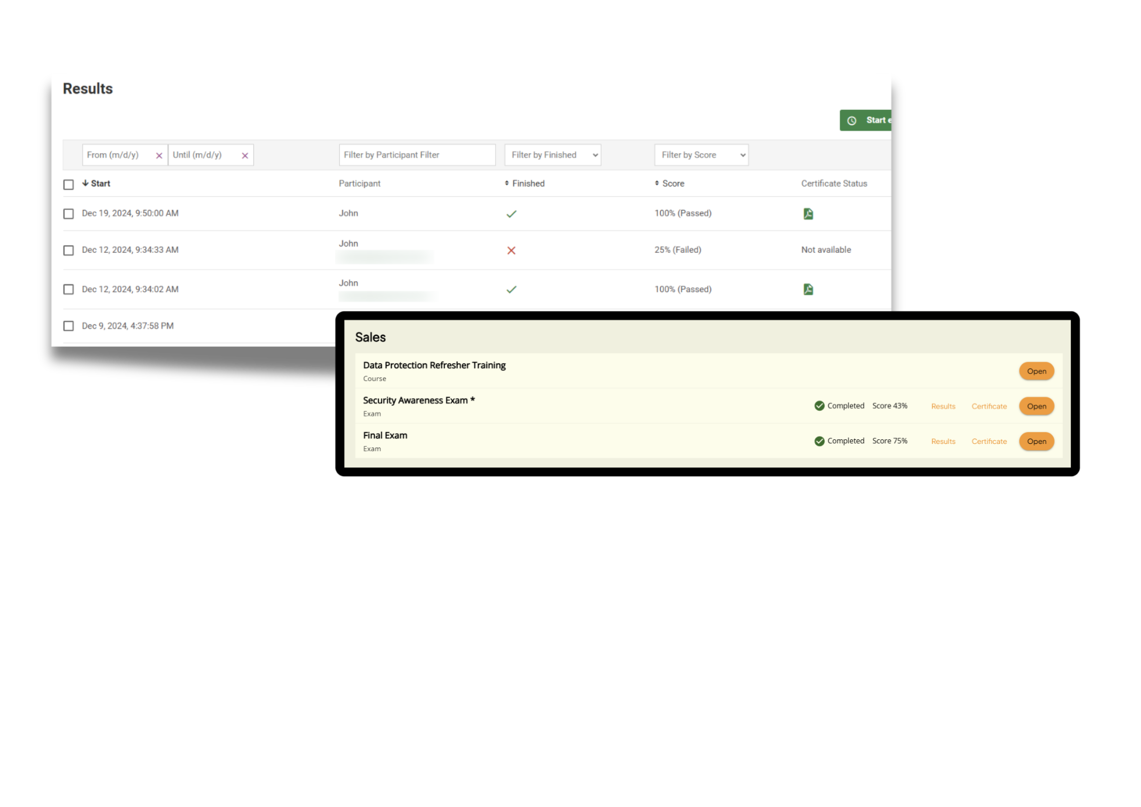Certificates are optional, allowing you to create training programs to suit everyone, from short sessions to rigorous courses with strict rules.